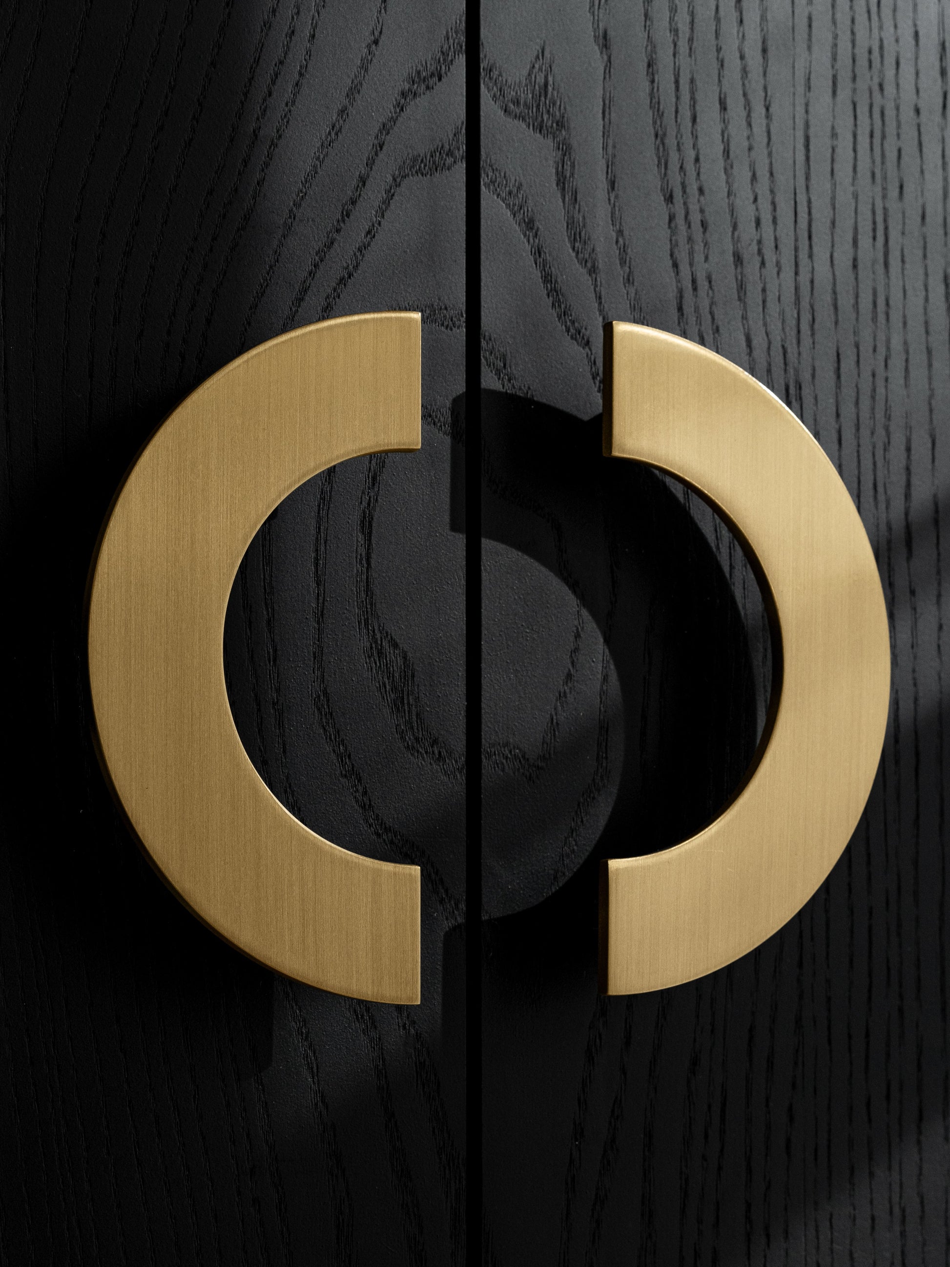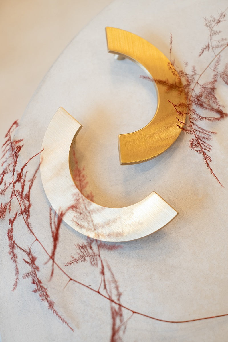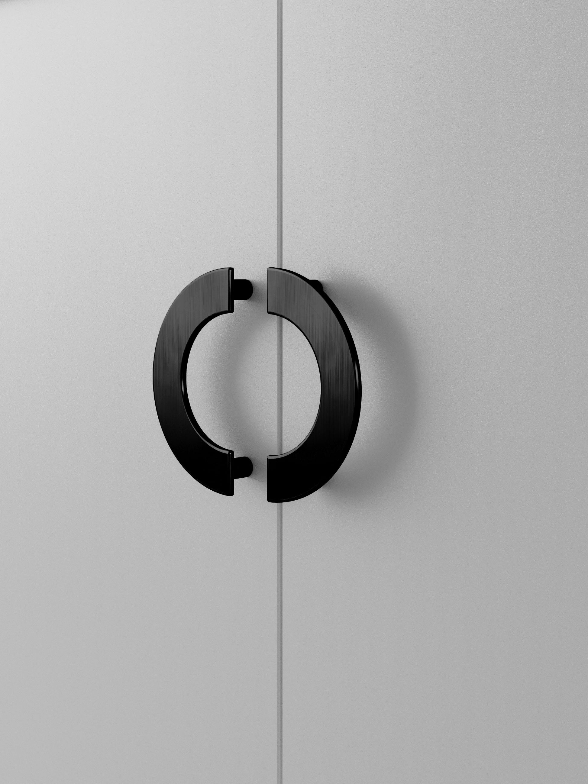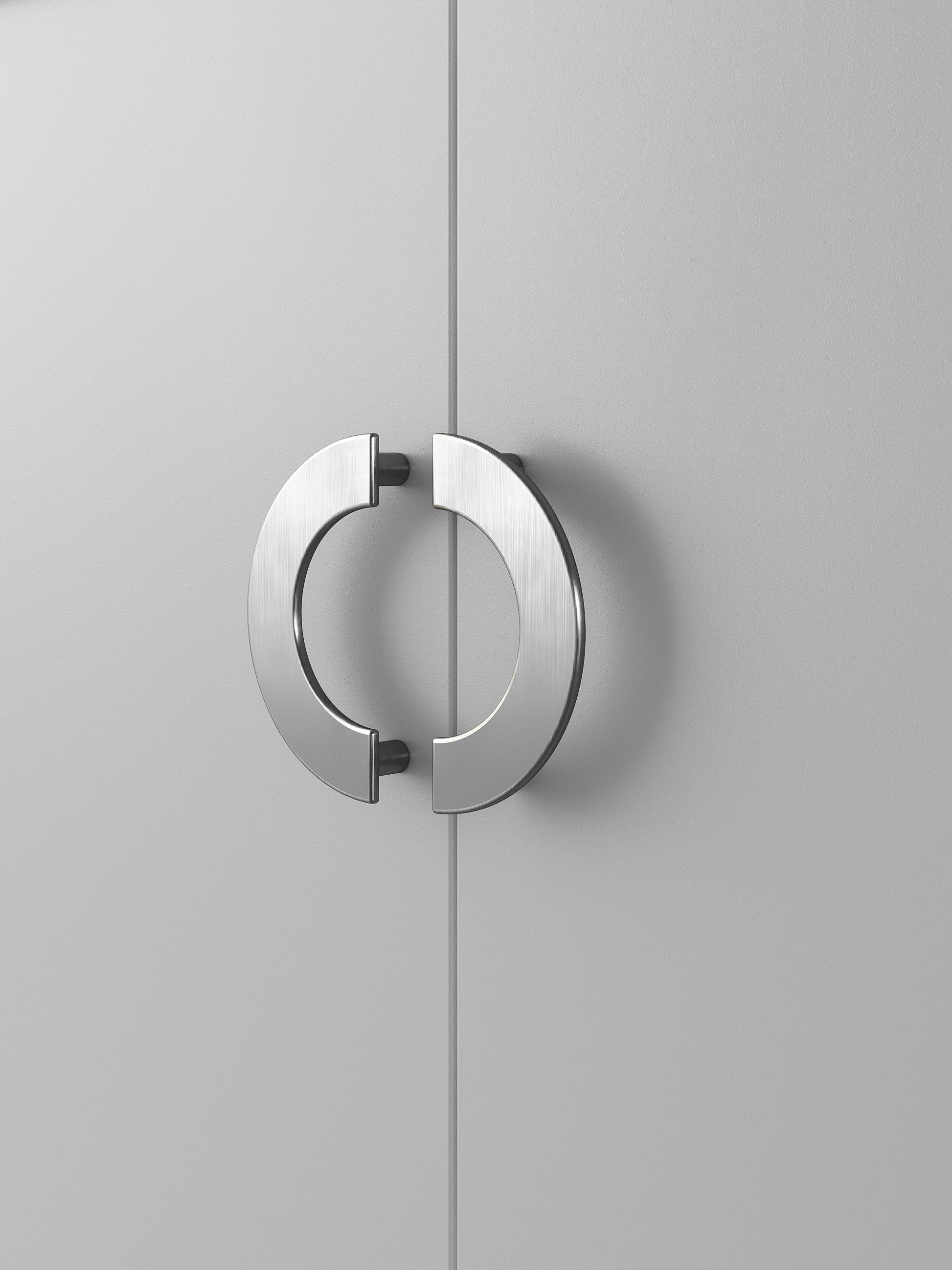 Set of the door handles made of metal.