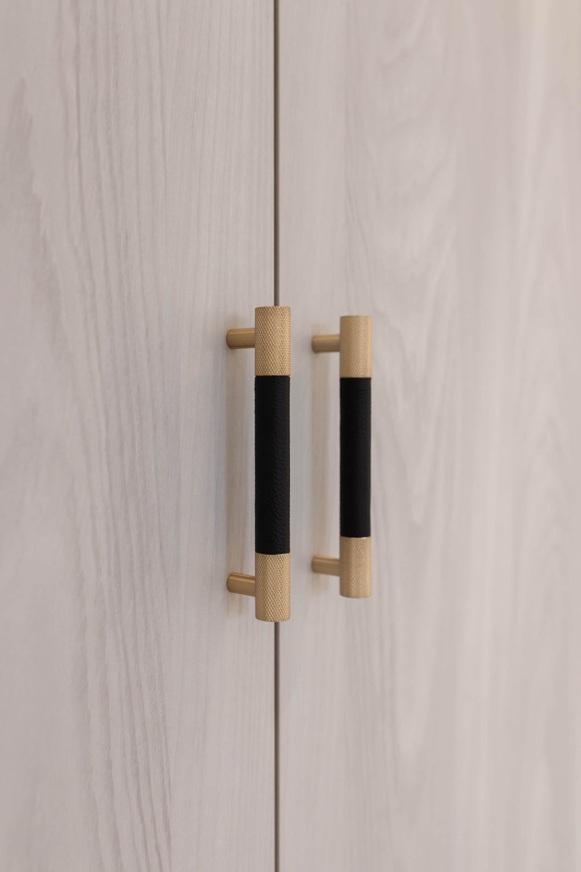 Closet bar made of genuine leather and metal will look great in any modern interior. Perfectly combine with any material.