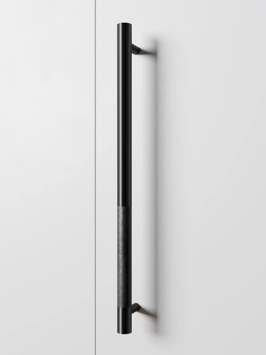 Closet bar made of metal and leather. Could be assembled horizontally and vertically.